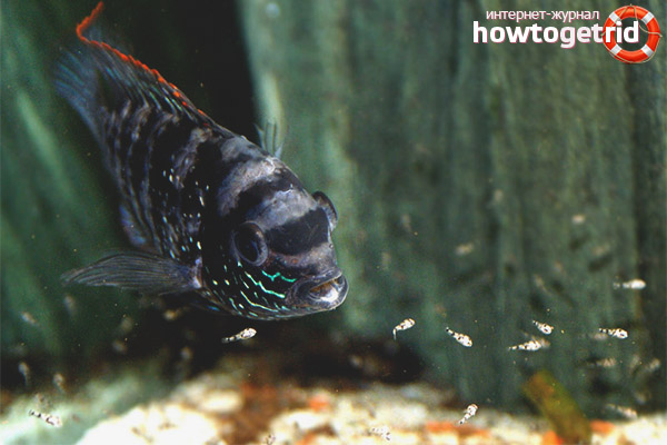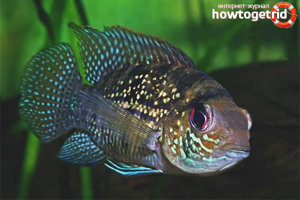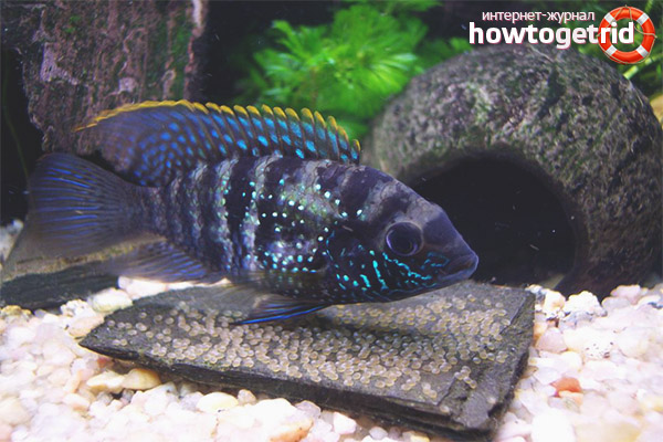 Unpretentious fish are great for beginner aquarists, unlike turquoise cancers. Since they do not reach such impressive sizes as other cichlids, they do not require such a large aquarium. They are unpretentious in nutrition and breed easily. The only important condition in the content is the purity and temperature of the water.