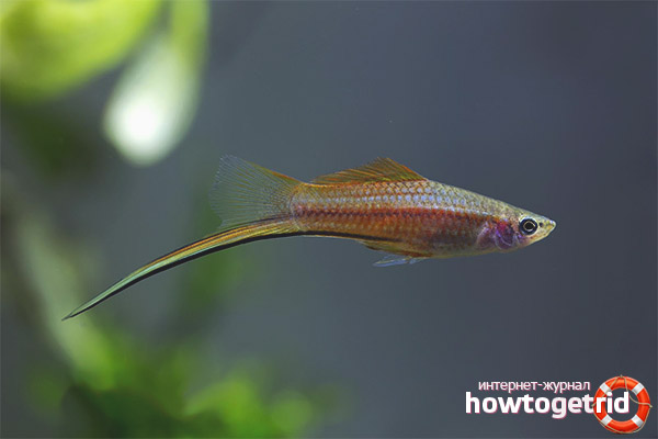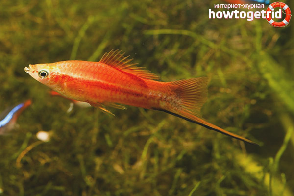 Swordsman is a rather famous species of scaly, which got its bright name due to the presence of a special outgrowth on the fin. In outward appearance, this outgrowth resembles a sword, which is why fish began to be called that. They began to contain representatives of this species in aquariums in the 19th century, and since then they have not lost their popularity. The Swordsman is mainly loved for their interesting appearance and variety of colors. In addition, such fish are not too demanding on the conditions of detention and quickly bring offspring.