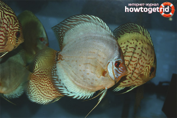 But as a result of crossing the fish with new colors, they also acquired quite poor health. Their immunity is low, so they often get sick. Wild discus is more resistant to disease and changing external conditions, but in aquariums they can be found less and less.