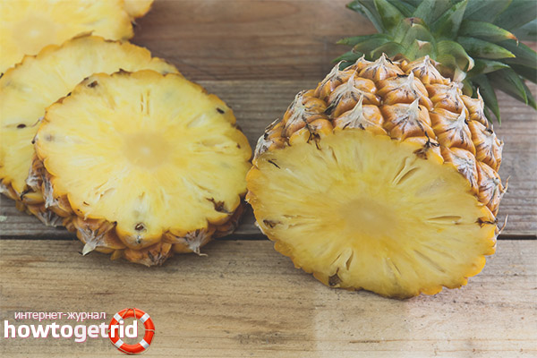 With excessive use of pineapple, like another fruit, there are negative points. Therefore, the product should be treated with caution. To begin with, it is worth noting that this fruit can cause allergies. A rash may even appear on the skin, so you should monitor the body's reaction to this fetus. Pineapple also contains many natural acids. This, in turn, can destroy weak tooth enamel. Eating fruit is necessary in moderation, since it can harm the stomach - acidity can increase.