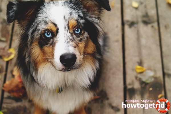 Caring for an Australian Shepherd consists of a bathing and combing procedure. There are periods of molting. It is spring and autumn, when the dog should be combed out every day, using a brush and a comb or a special device - a furminator. If there is no molt. It is enough to comb the dog 3 times a week. It is important to remember to do this. Thick Aussi wool is a wonderful home for various parasites, and there is also a risk of skin diseases, the appearance of mats.