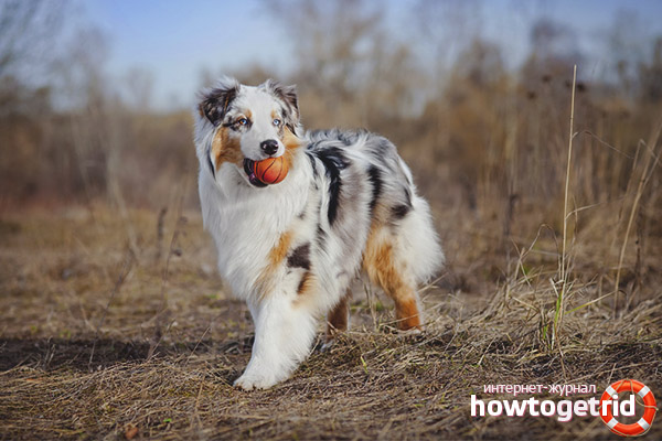Australian Shepherds are very trained. When training takes place, screaming and beating are unacceptable. The dog will learn much better if he knows that after the correct execution of the command she will receive some refreshments, as well as praise. Then she will study with pleasure and interest.