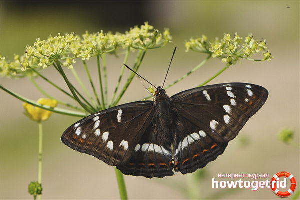 Poplar ribbon - one of the largest butterflies belonging to the nymphalidae family. Its wingspan ranges from 6 to 8.5 cm. The surface of the wings has a dark brown color, in the sun you can see a green-blue, pearl overflow.