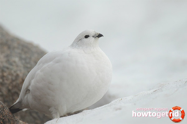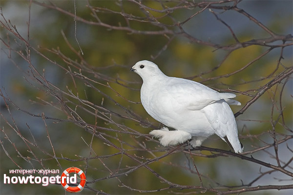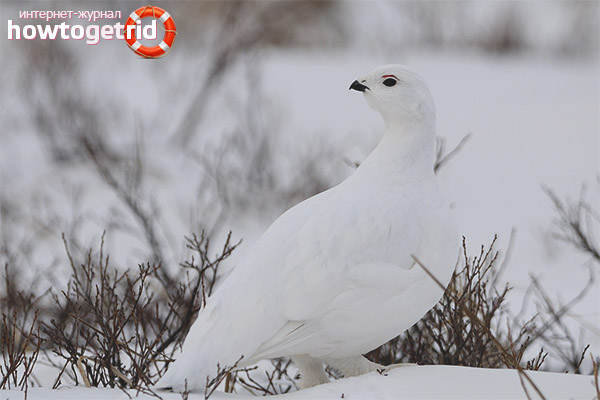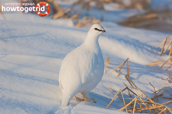- Individuals of female gender replace their winter attire earlier than male representatives of the family. They become whitish, only in the tail region there are black feathers. In the area of the paws, a dense and short plumage flaunts. Thanks to these features, birds merge with the environment, hide from enemies and can survive in the winter.