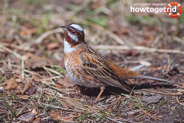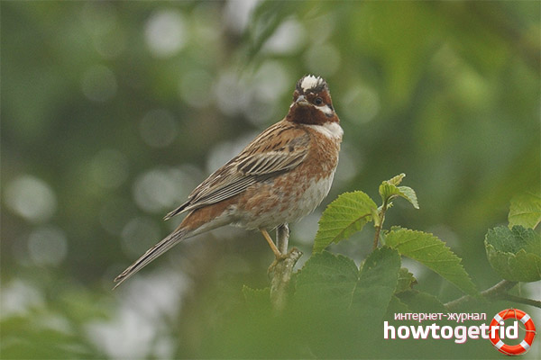It holds, except for the spring period - at the time when couples are created, in flocks. Often, teaming up with sparrows or other small birds, they all go out in search of food. Together with insects, they eat seeds of many plants with pleasure. White-cap oatmeal eats on the ground.
