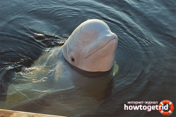 - Beluga whales can be tamed and trained. This is what people use when creating dolphinariums, where dolphins live in conditions as close as possible to the natural environment. With the help of trainers, they learn various tricks and arrange performances. They are also taught to shoot underwater, which helps in the exploration of the Arctic.