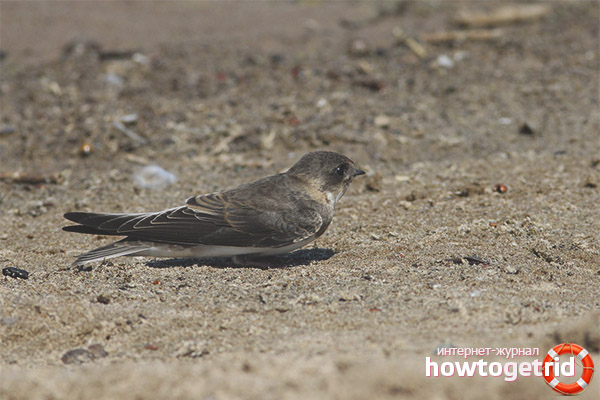 The tail near the shores is small, has an average length and quite narrow. These swallows have a short but very hard beak, with which they cleverly dig underground burrows. It is almost impossible to distinguish between a female and a male.
