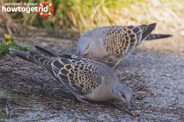 Streptopelia - sociable birds, often sitting on trees, willingly let a person close to them, however, when it approaches, they abruptly break into the air and fly away. In those countries and regions where doves are hunted, representatives of the species do not allow a person to be closer than 100 meters. The flight speed of these birds reaches 60 km / h. During the flight of the Streptopelia can be seen a noticeable transverse light strip on the tail, which clearly distinguishes this species of birds.