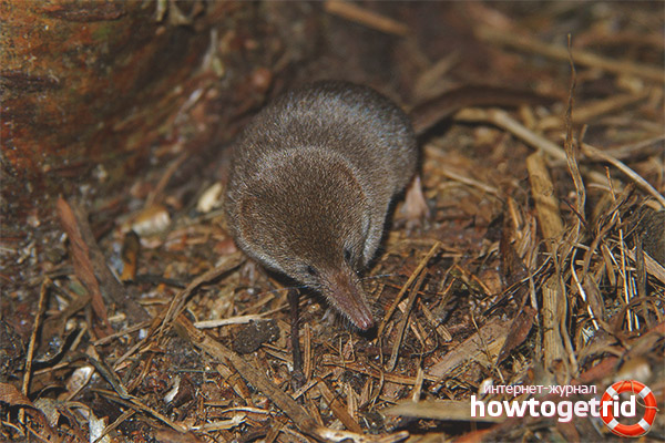 - Tiny This is the smallest type of shrew: the size does not exceed 5 cm, weight 4 g. Her eyes and ears are so small that it is difficult to notice them under the thick fur. And the tail, unlike other subspecies, is not so long. The coat on the body is short and velvety; in summer, the color becomes much darker.Habitats are forest-tundra, forest zones and marginal areas of marshland. They live in vast territories, ranging from Sakhalin to the Scandinavian Peninsula. She must constantly, every two hours, eat, otherwise she will face death. It is almost impossible to notice this crumb in an open area, because it moves in dense grass or under fallen leaves almost silently. And in the winter it can appear on the surface if it cannot find insects in the soil because of frozen ground. Many lovers feast on tiny shrews bypass them, as they smell by no means appetizing.