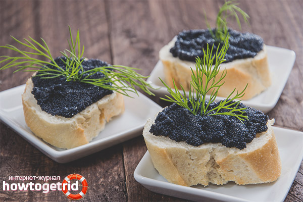 Delicacies are welcome guests at the festive table, black caviar is among the best products. It is customary to use it together with bread, making delicious sandwiches. This appetizer goes perfectly with any type of alcohol, whether it is champagne, whiskey or wine. In addition to excellent taste, sturgeon caviar is famous for its mass of valuable substances in the composition, and therefore the human body needs it for proper operation.