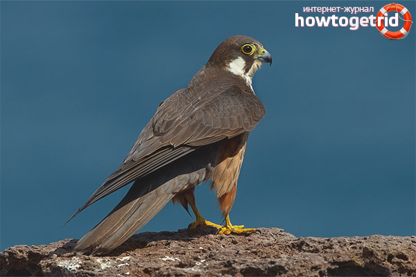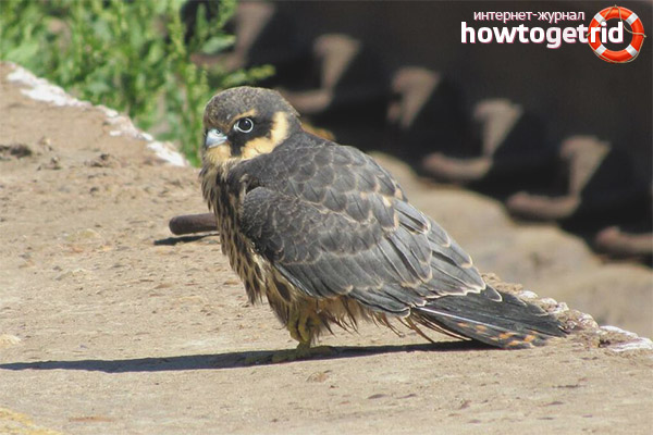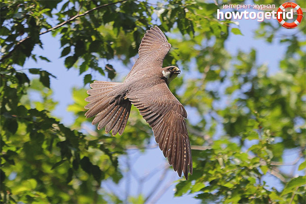 This bird prefers most of all to village and coastal swallows. Due to its excellent vision, prey is caught during the flight. Sometimes prey, which is caught in the air, is not enough, and you have to catch rodents. This is much more difficult than fishing in the air. Catching a large prey, the falcon will eat it right away on the nearest tree, and if something small comes across, it will swallow on the fly.