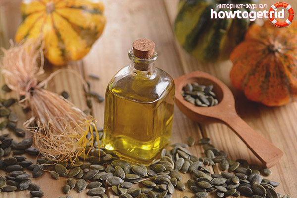 Get oil by squeezing pumpkin seeds. In appearance, it has a light brown or dark green tint, has a pleasant taste and a specific smell. A wide range of uses is due to the diverse beneficial properties: