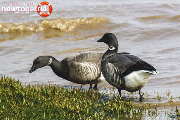 - Branta bernicla nigricans. Birds with a black belly. Nesting is carried out in North America, in our country - in the Siberian open spaces.