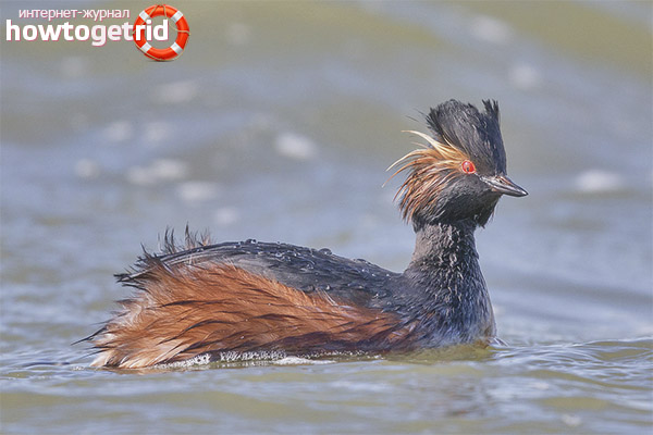 The Black-necked Grebe is also called the Grebe duck due to its specific coloration. According to its characteristics, the represented waterfowl is not too noticeable for ordinary people. But connoisseurs know that there are many characteristics that distinguish the toadstool from all other relatives. We immediately specify that there are no differences in gender in terms of color. Today we will study everything that affects black-necked birds.