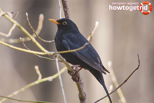 In today's material, we have studied small birds, which are called nothing more than blackbirds. These individuals, by their nature, are quite warlike, protect future offspring at the cost of their own lives. They live preferably in larch, mixed and coniferous bands. Also found next to a person, for example, in park areas and squares.