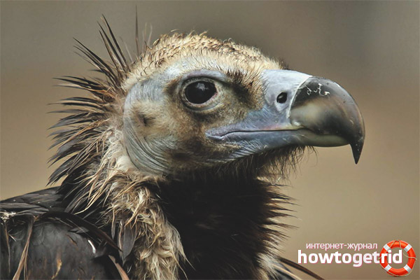 One of the largest birds in the country does not shine with beauty and prefers to settle far away from people. The appearance of the neck carries the imprint of his lifestyle and way of eating. It belongs to scavengers. In nature, everything is rational, so the bird has a small head and a strong pointed beak, which allows you to tear the carcass of an animal in a few minutes. The neck is almost featherless and covered with stiff thick skin. Nature provided for everything, because the feather cover is difficult to keep clean with a similar lifestyle. Powerful muscles of the neck, wide wingspan and sharp vision help in obtaining food.