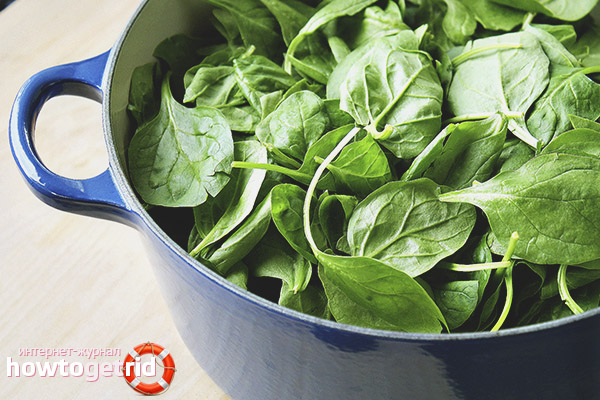 - Without fail, before each cooking rinse the greens with running cool water. Get rid of thick stems, spoiled leaves and other debris. If desired, boil the spinach, the procedure should be carried out in a salted solution for only a few minutes.