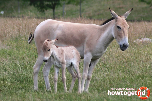 Duration of pregnancy - 1 year, sometimes delayed up to 14 months. Usually 1-2 babies are born. Immediately after birth, they are well developed. At 6-8 months, they already begin to live independently. Prior to this, the female feeds them with milk. They grow up to two years of age. Sometimes they cross with horses, after which mules are born. In captivity, representatives of the species can live for about 21-25 years.