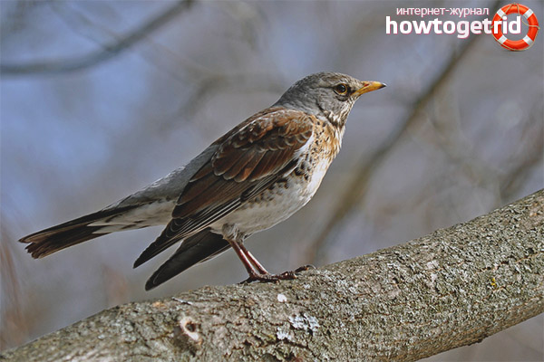 The thrush family is very numerous. It includes more than a dozen species of birds. Fieldfare is one of the largest birds among all members of the family. Until recently, the field of horn could not be seen in the city or other settlement. Representatives of this species of birds lived only in the forest. Today, due to the fact that they cannot find enough food for themselves in their habitat, they can often be seen in the city. Birds seek food where there are trees with their favorite berries. These are parks, squares, and also mountain ash gardens.