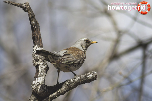 This species is characterized by a grumpy character, so it is quite easy to provoke a fieldfare to provoke a fight and scandal. This has long been learned by birds of prey, which often use this feature. Often their nests become victims of a flock of ravens. Some of them distract the thrush to make him angry and provoke a fight, while others calmly take their eggs.