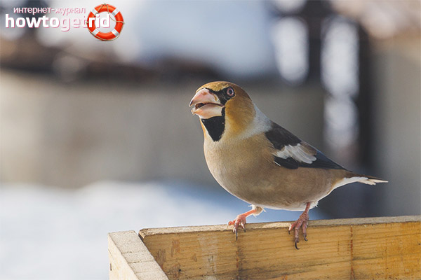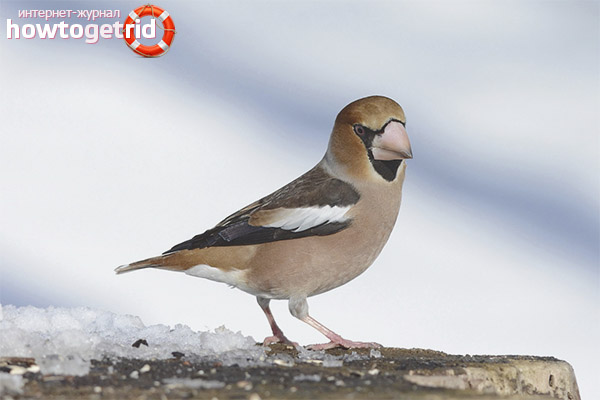 Usually the birds feed on the seeds of berries. So, the most favorite feast of birds is cherry pits. Their oak tree easily splits with its large beak. In addition, the bird eats shoots and buds of young trees in spring, as well as insects, which are found in abundance in the bark and foliage in summer.