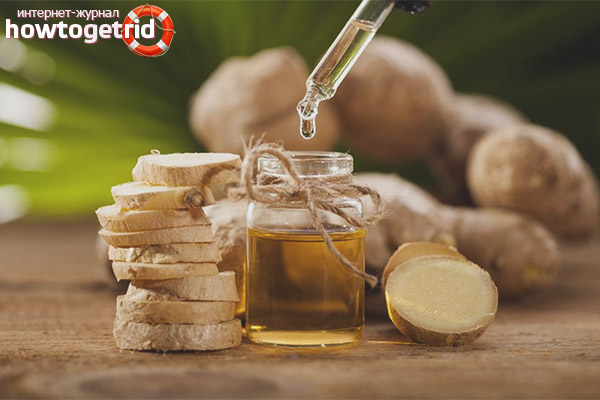 - Vegetable oil (20 ml) is combined with ginger (2-3 drops), make hot applications, lotions.