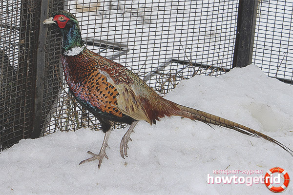 The organization of cells or any premises is not required for the maintenance of pheasants. The fact is that pheasants live quietly all year round in the open air in the middle climate. Pheasants are not at all afraid of frost and, thanks to their beautiful and warm plumage, can safely winter on the street.