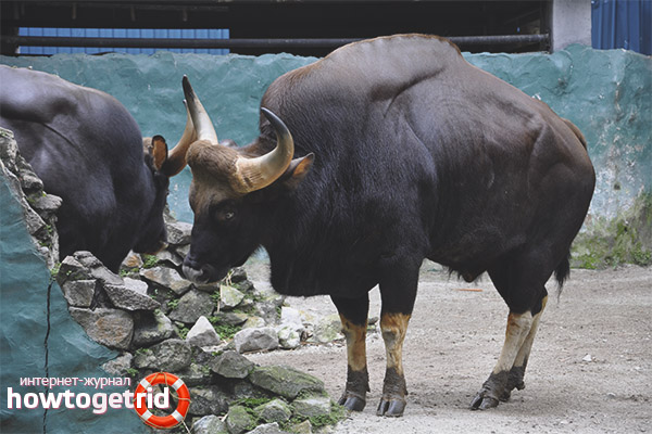 Gaurov can also be found in zoos and reserves. Society seeks to maintain an endangered species, therefore, does everything to protect the remaining individuals, as well as increase the population of gaurs.