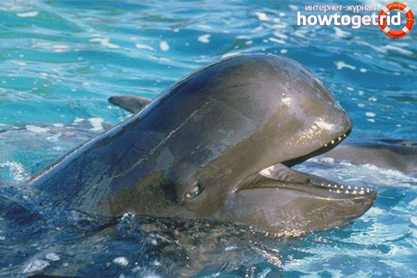 The head has a spherical shape, but many eyewitnesses say that it looks more like a melon. It narrows toward the muzzle, and wider at the base. These mammals are distinguished by a body with perfect streamlining.