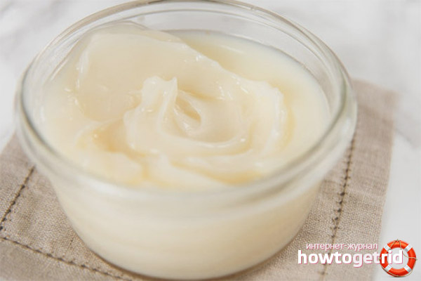 The same cream recipe helps weak, cut and damaged hair. They smear the roots, rub into the skin. After 30 minutes, rinse with warm water.