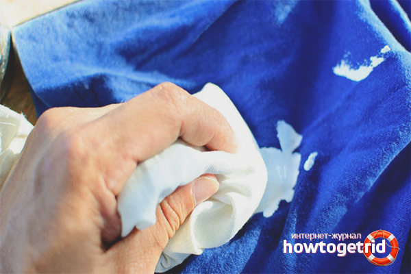 Things must not be pre-soaked or washed. Be sure to remove dried residue with a brush. Apply the remedy to combat the corrector from the wrong side, putting a clean, light fabric without patterns, which will absorb dirt.