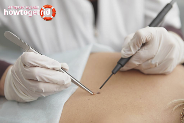 - Electrocoagulation Depending on the size of the formation, a different current strength is selected. It acts almost painlessly, but sometimes it can leave burns.