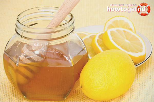 Children and adults are recommended a lemon medicine. Citrus is dipped in hot water and held until it softens. The fruit is cut, squeezed juice and mixed with 2 tbsp. l pharmacy glycerin. Sweeten with honey and mix thoroughly. Adults consume 30 ml twice a day, and children - 1 tsp. syrup.