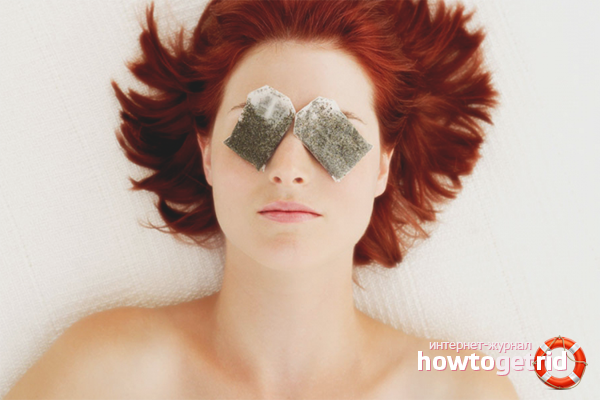 - Tea. Strong tea has long been used in the fight against various eye diseases. And all due to the fact that the brewed tea has a huge amount of tannins. Brew very strong black or green tea and rinse your eyes with this compound. This will help get rid of itching and pain in the eyes.