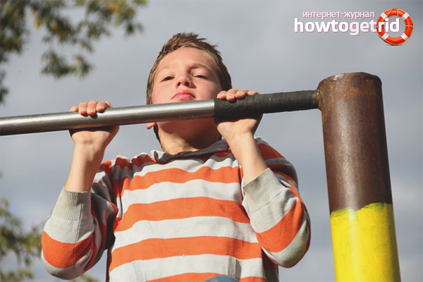 First, the child should do a light workout. After that, the boy grabs the bar with a reverse grip and takes a breath. On exhalation with a sharp movement, the child should make a jerk that will allow him to bend a little in the shoulders. This small angle will be enough to begin to contract muscles and lift the body. This simple technique will allow the child to pull himself up without assistance. After the chin touches the crossbar, on exhalation, the body can be lowered to its original position.