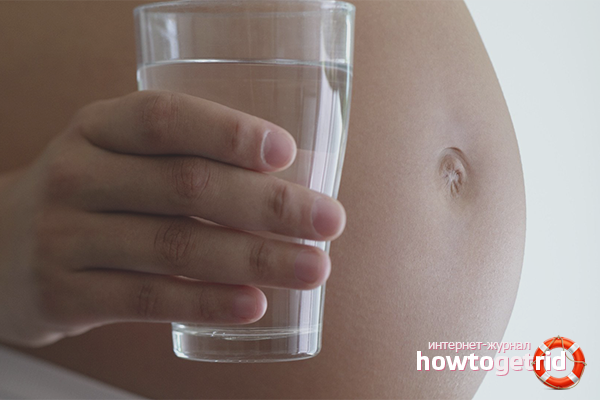 - Pregnant women need to drink enough fluids per day. You can not exceed the measure, otherwise a strong load on the kidneys will begin. Doctors recommend drinking about 2 liters. pure water.