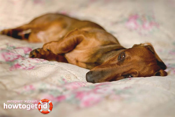 If the dog does not want to get up and go somewhere, help her. It is forbidden to carry out manipulation, focusing on the stomach. First of all, make sure that the pet is feeling well. After that, try to raise the dog.