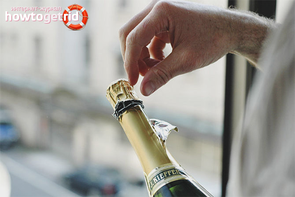 - After the champagne is chilled, remove all excess from the bottle so that only the cork remains. After loosening the wire, the plug will exit without problems. If you are not confident in your abilities, do not even try to do such a trick.
