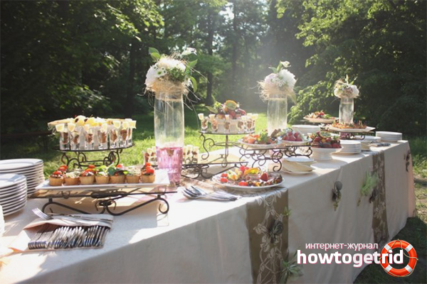 Those planning to celebrate outdoors should take a closer look at the tent. Such a device in the summer will protect you from the scorching sun, and in the fall it will protect you from unexpected rain. Decorate it with garlands, Chinese lanterns, balls, beads and colorful ribbons.Use varnish with silver sequins, it is easily sprayed onto the fabric and lasts more than a day. Take care of the lanterns that light up after sunset. As a place of celebration, go to the banks of a river, lake or green lawn. For extreme lovers, you can climb the mountains, but not too high so as not to turn the celebration into a camping trip.