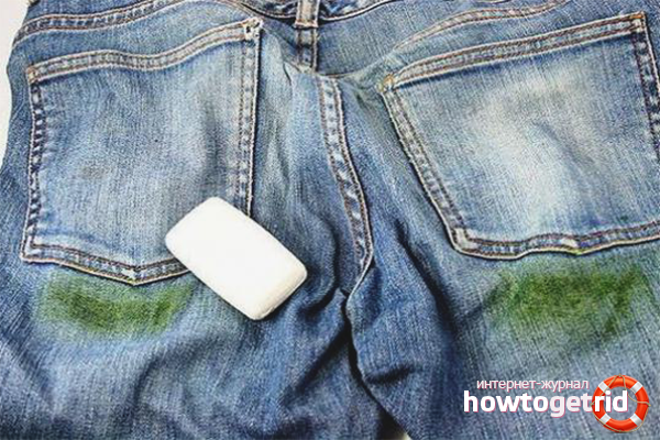 If there is a greasy mark on the clothing, pour a drop of dishwashing liquid on it and rub it with a brush. After that, the jeans need to be washed in a typewriter and hung in fresh air for several days. By the way, if the stain was small, it can be removed simply with a dishwashing gel, as it dissolves fats well.