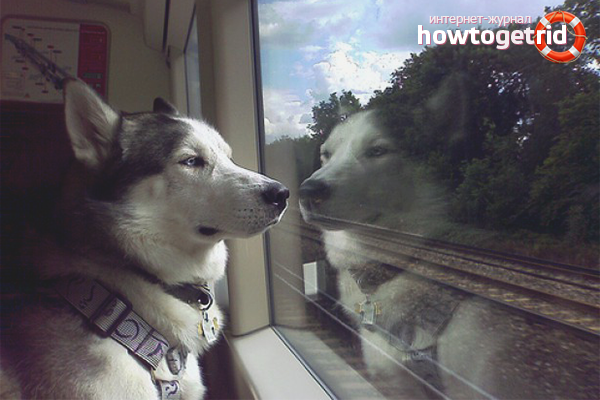 The way dogs are transported by train and car is almost identical. You will need to take the necessary documents for departure, to get vaccinated. Take care of motion sickness, if possible, fasten your pet seat belts. Make regular stops; don't let your pet go off the leash. Entertain him with games at every opportunity. Drive calmly, do not accelerate sharply or slow down, be predictable.