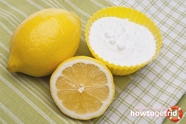 - Squeeze the juice from half a lemon, dilute it with 225 ml. filtered warm water, add 6-7 g. soda. Introduce soda in small parts until the sizzle is complete.