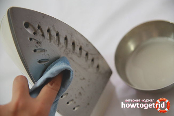 For effective cleaning of the iron, a 6% solution of hydrogen peroxide or Chlorhexidine, which can be purchased at a pharmacy, is used. Processing is carried out in a well-ventilated area, while the iron does not need to be plugged in.