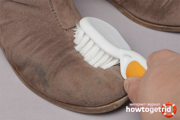 - Suede shoes are washed with the resulting liquid, paying special attention to salt stains.