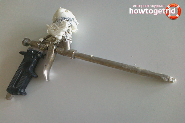 In order to clean the gun when all repair work is completed, and there is no need for polyurethane foam, you need to unscrew the container with the substance (most likely, it will have to be thrown away if you do not use it in a couple of weeks, because after this period the foam inside will dry out) . Further, there are two scenarios: