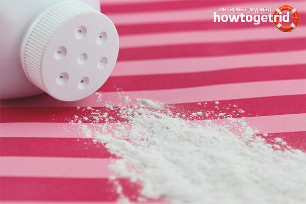 - Sometimes the powder itself can cause an allergic reaction in the child. This is manifested by the appearance of focal redness, a rash at the place of treatment of the skin with powder. In this case, the production powder can be replaced with the simplest corn starch. It is considered a hypoallergenic and is suitable even for the most sensitive skin.