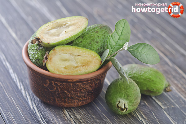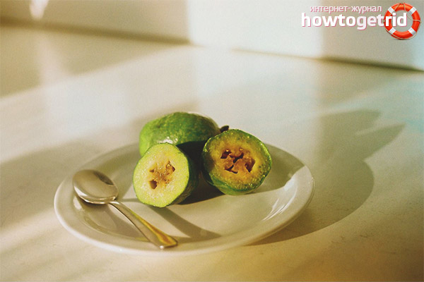 Feijoa is rich in vitamin C, iodine, potassium and other beneficial substances. Its regular eating is very beneficial for the thyroid gland and the gastrointestinal tract. Taking only 3 tablespoons of fruit pulp per day helps to strengthen the immune system, reduce blood pressure with hypertension and make up for the lack of iodine in the body. In addition, the berry improves digestion, stimulates the proper functioning of the kidneys, cleanses the body and normalizes metabolism.