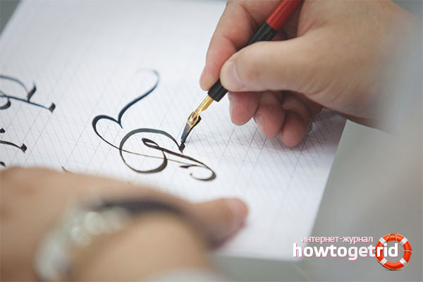 It’s not very difficult to get used to this business, it’s enough to devote several hours to it. To write comfortably, hold the pen between the middle, index and thumb so that you retreat one and a half centimeters from the tip. Put your hand on the sheet and begin to draw a straight line. You can press the pen a little to feel how the thickness of the letter changes.