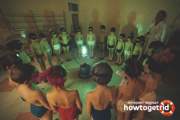 The lamp is brought to the heels and back instead of mustard plasters, the maxillary sinuses, the forehead and the area behind the ear are processed to spread the nose. Warming up is best done at night so that the child remains warm after the procedure. After irradiation, woolen socks can be worn on the legs to enhance the effect.