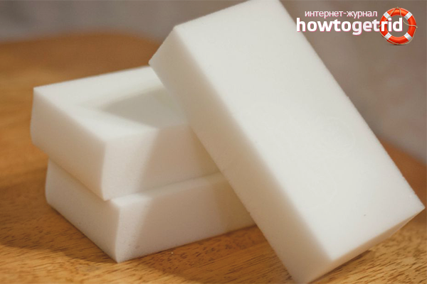 The sponge for home care consists mainly of melamine rubber. It, in turn, is made of resin, which subsequently hardens, and synthetic fibers. It is due to the last incoming component on the sponge that a kind of abrasive is formed that helps to cope with any kind of pollution.